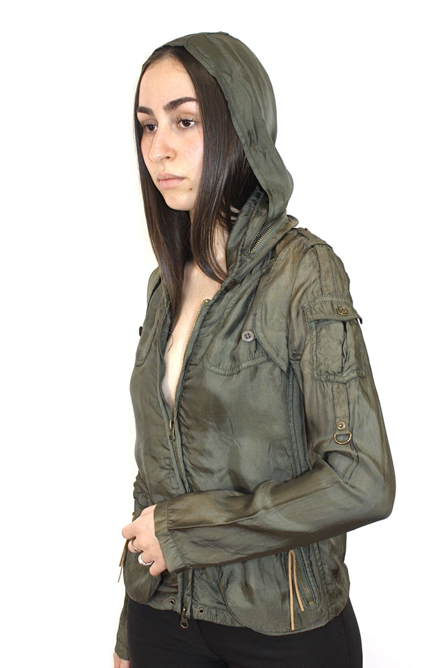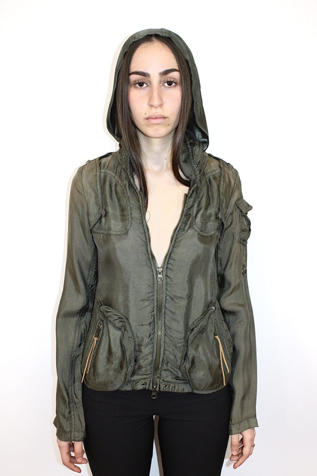 Giacca verde oliva sfoderata con cappuccio, stile militare firmata NEIL BARRETT.